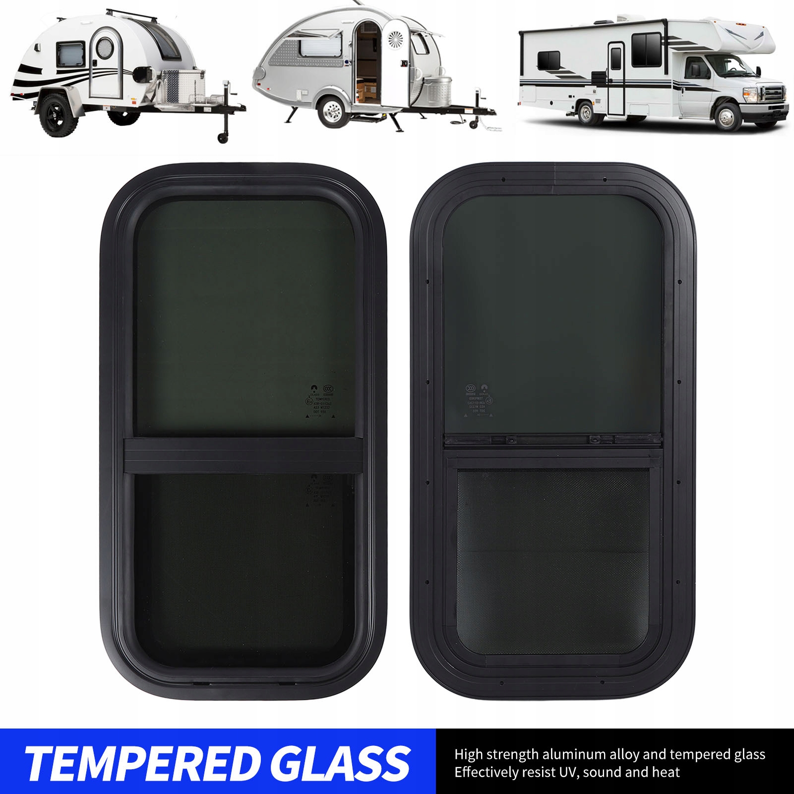 Окна для автофургонов размером 24,4 x 12,2 дюйма, алюминиевый сплав, водонепроницаемое, устойчивое к ультрафиолетовому излучению, закаленное стекло, окно прицепа с экраном для кемперов