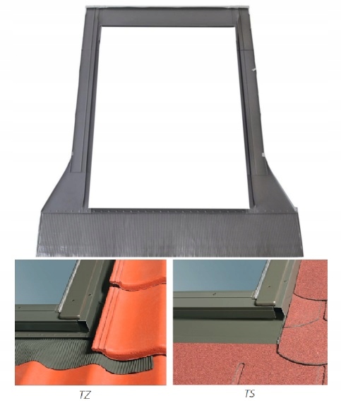 - Плоский отлив TS для плоских кровельных покрытий с максимальной высотой 10 мм, например: рубероид, битумная черепица, шифер, плоский листовой металл (сталь или алюминий), соединенные традиционным швом (шов фальц на крыше кровельщиком.