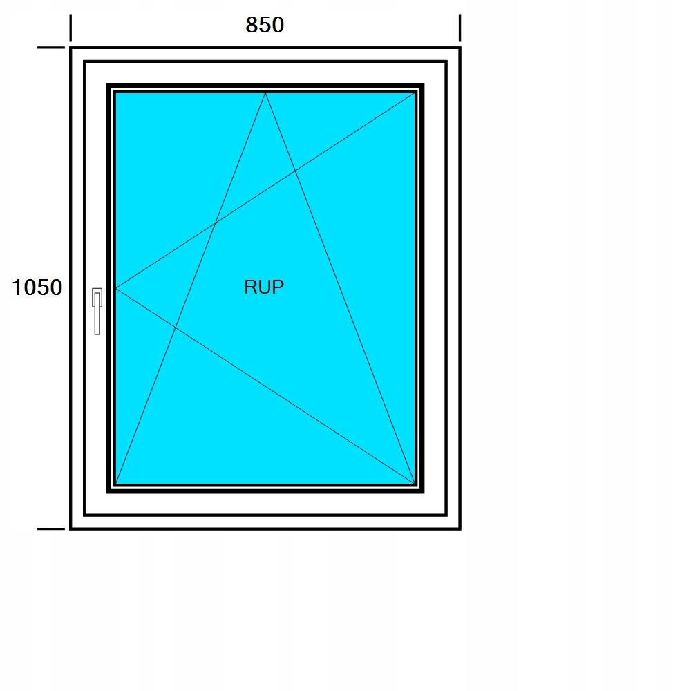 Размеры ОКНА ПВХ. 850 x 1050 мм, Наклон и наклон