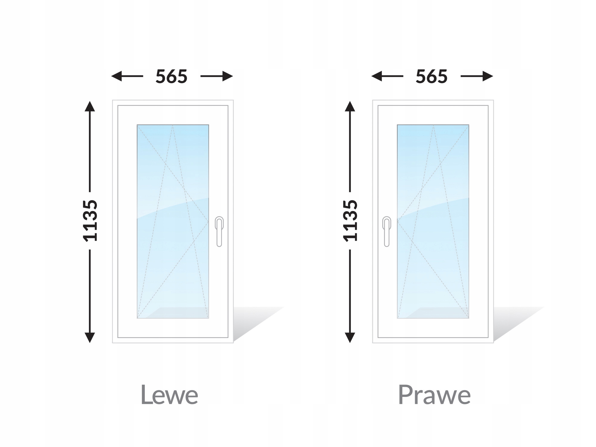Окно ПВХ Типичное 2 вала белого 565 x 1135 h1>
