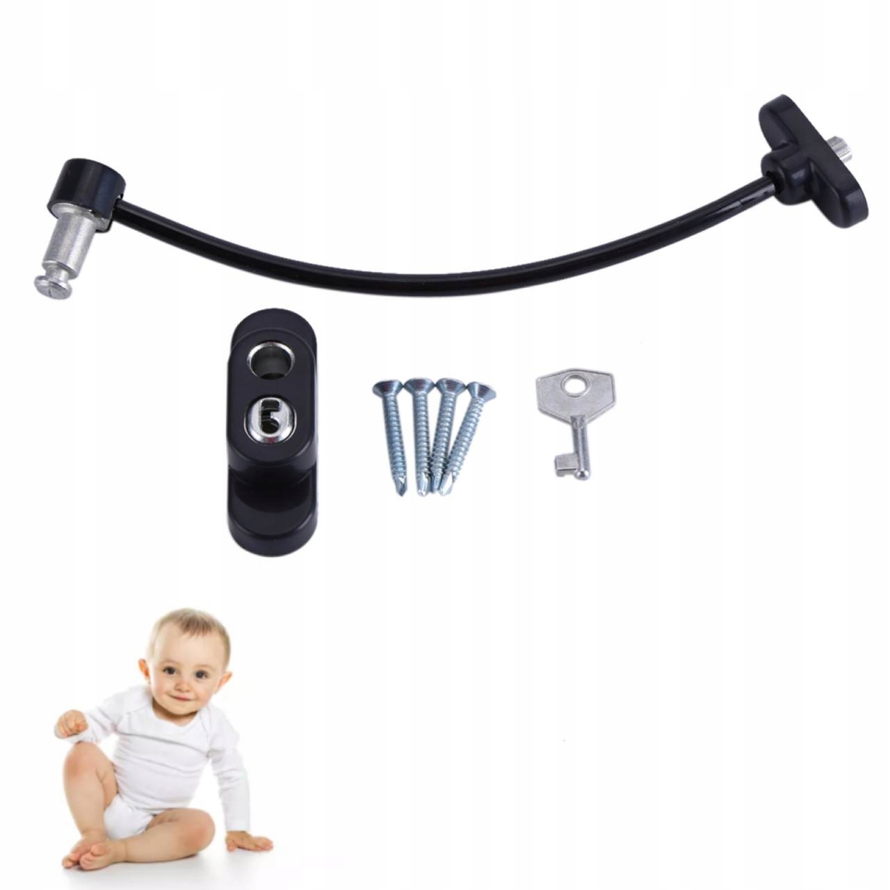 Специально разработан для детей. Добавляет дополнительный элемент к мерам защиты младенцев и детей, ограничивая открытие окон или дверей, безопасно в использовании.