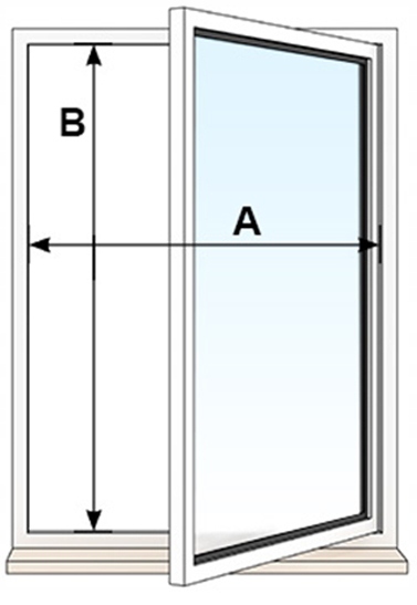 - Ширина (A) x Высота (B) оконной рамы (от уплотнителя до уплотнителя)