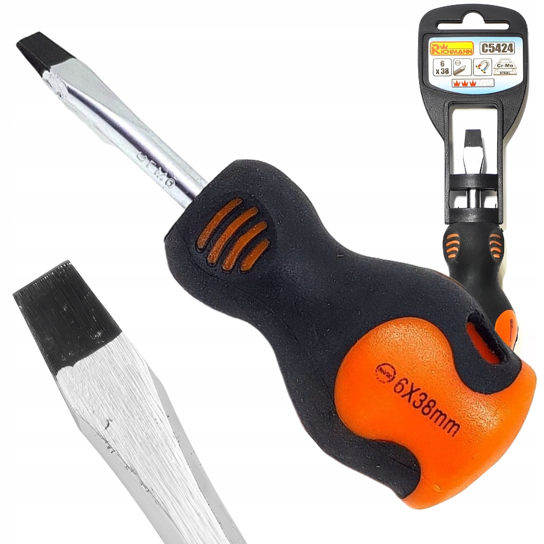 КОРОТКАЯ ПЛОСКАЯ ОТВЕРТКА 6x38 мм ТВЕРДЫЙ МАГНИТНЫЙ RICHMANN C5424