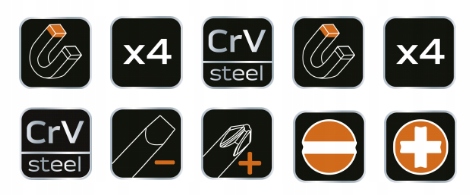 - Набор для отвертки Neo содержит 4 отвертки: плоская и скрещенная.