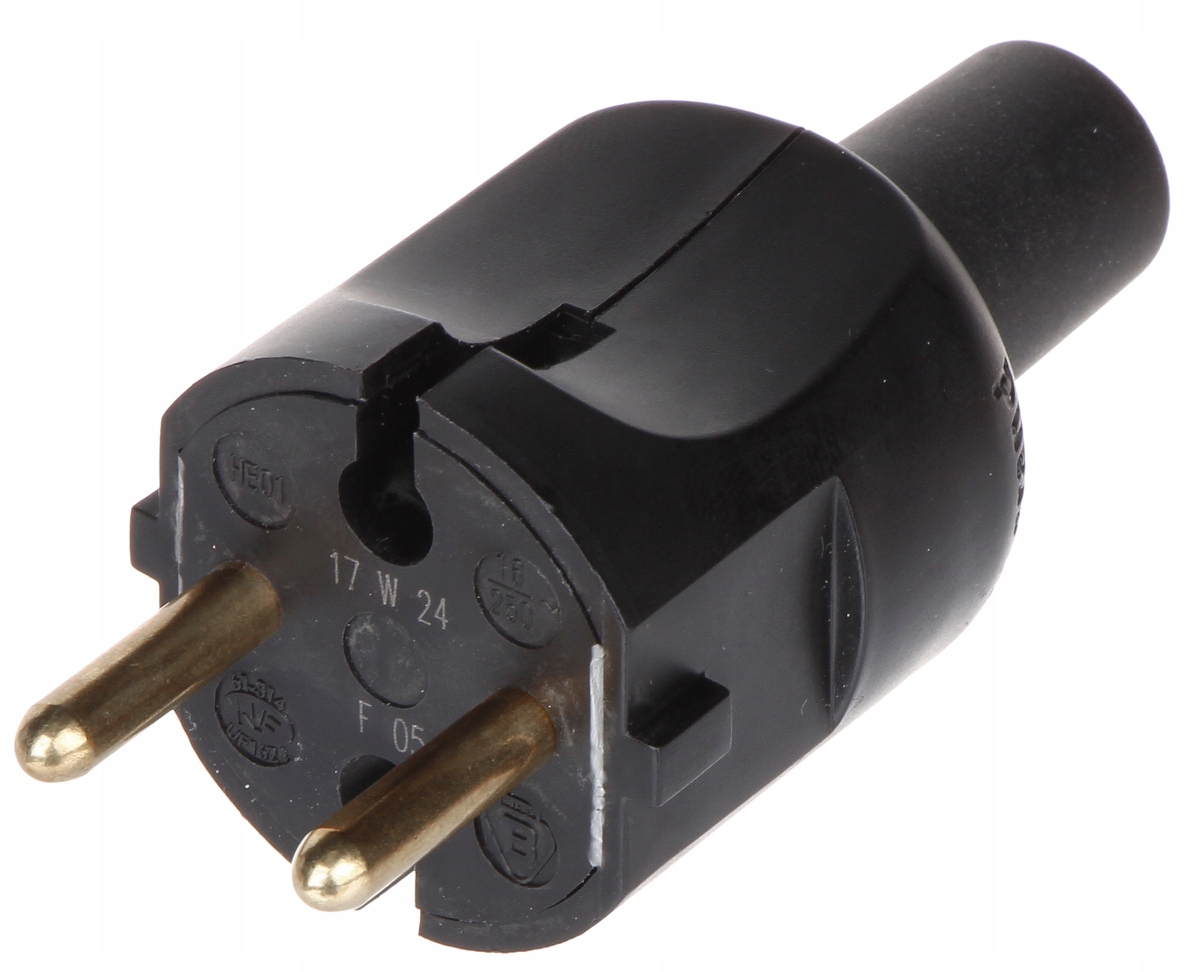 Вилка, используемая для питания устройств класса II. Резиновая розетка для кабеля.