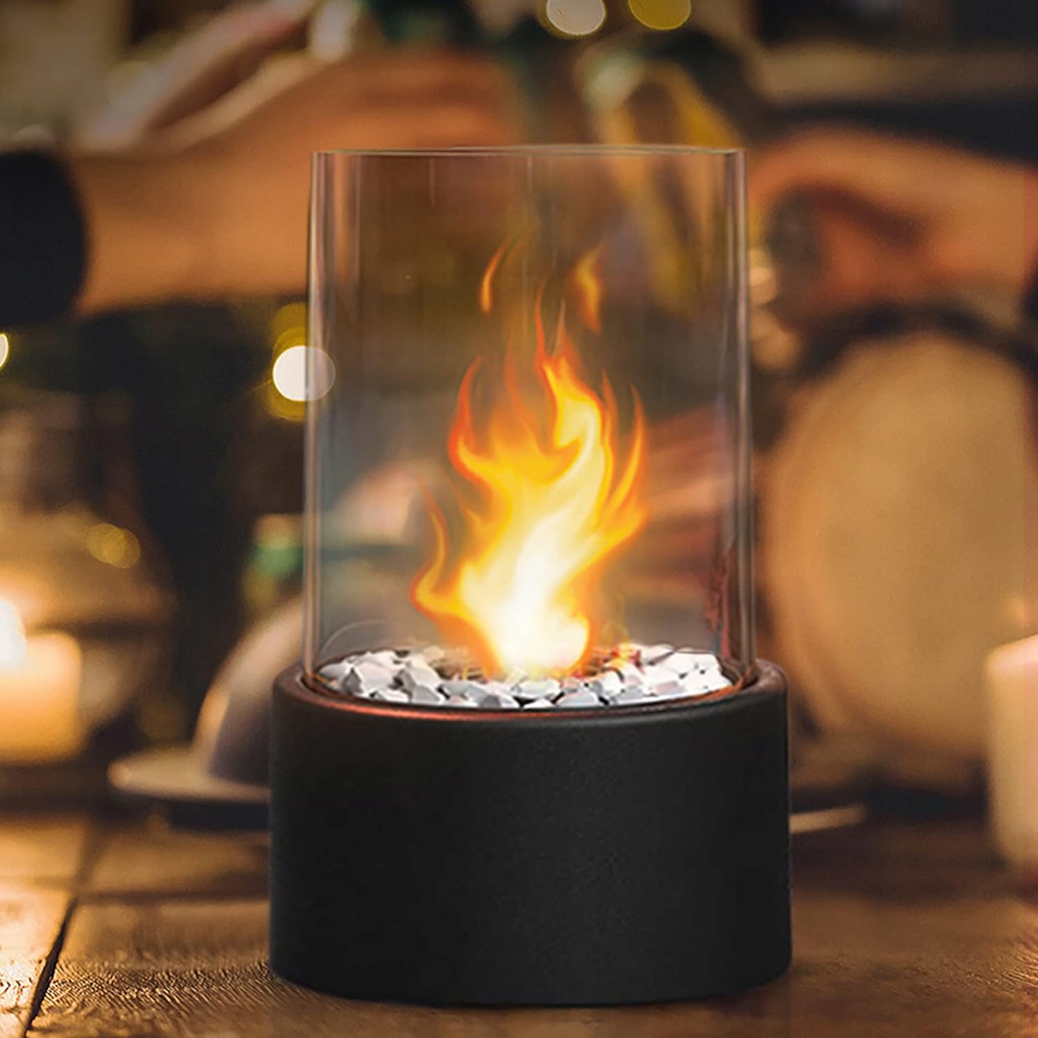 БЕСПЛАТНЫЙ -Био -камин, стоящий со стеклянной террасой
