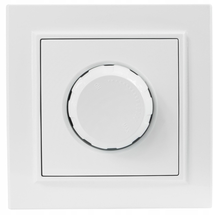 Включение света и изменение его интенсивности регулируется поворотом ручки. Диммер изготовлен из прочного и устойчивого к выцветанию пластика белого цвета.