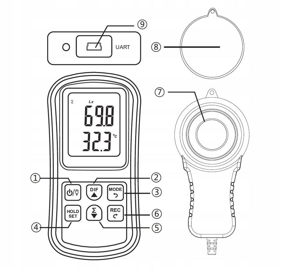 Прибор может измерять не только текущий уровень освещенности, обеспечивать максимальный и минимальный уровень освещенности. значения освещенности и температуры, а также остановить измерение, собрать данные, средние значения и т. д.