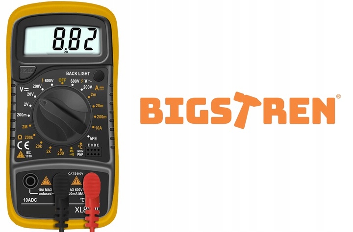 - ПОДДЕРЖКА - комфортная работа. Счетчик оснащен складной подставкой. Благодаря этому устройство приобретает устойчивое основание, которое позволяет размещать его в наклонном положении. В результате мультиметр занимает гораздо меньше ценного места, а его дисплей у человека, использующего его, всегда находится в оптимальном поле зрения. Подставка никоим образом не препятствует подключению и использованию тестеров устройства.