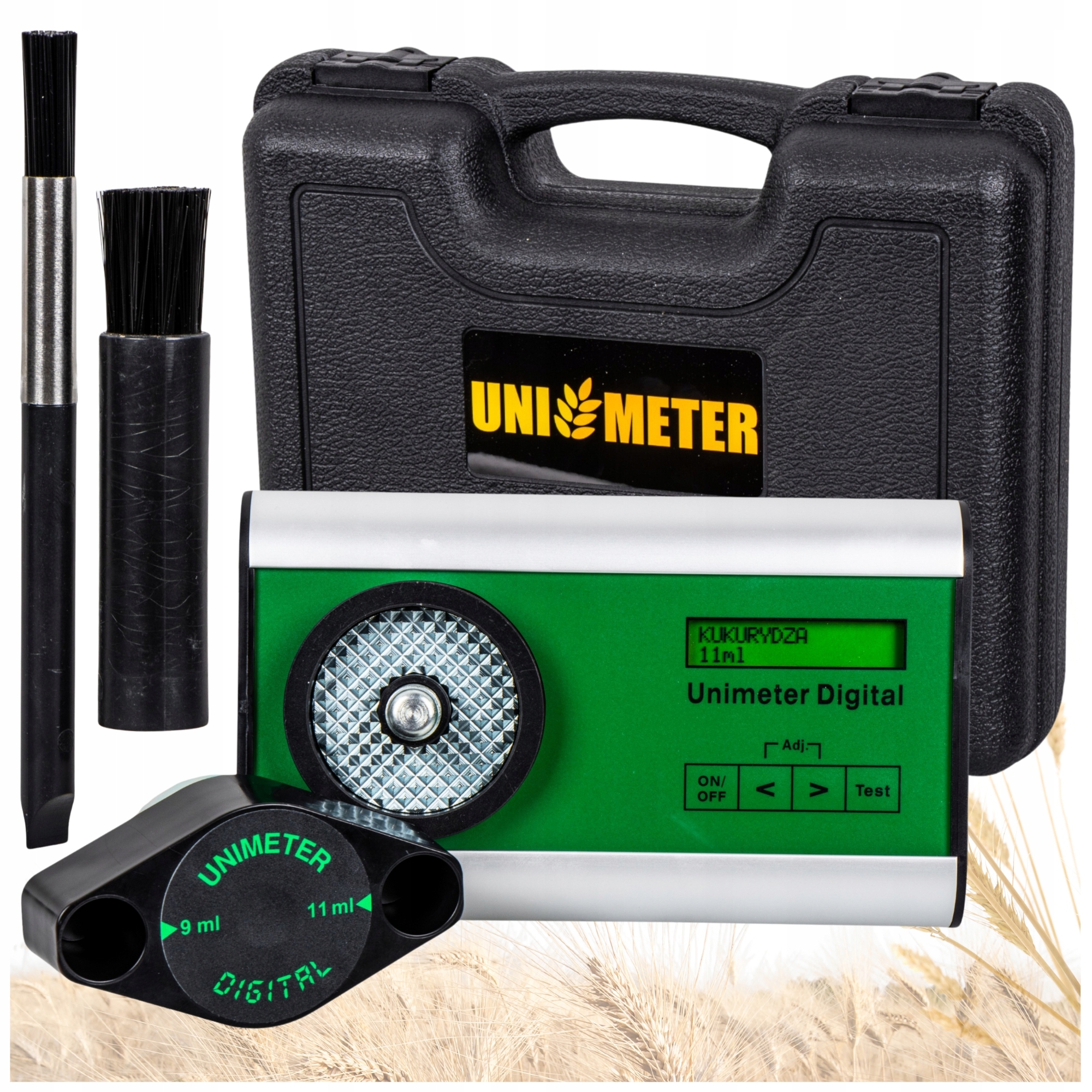 Unimeter Super Digital Meter - это расширенный измеритель влаги зерна и семян, который позволяет быстро и точно измерять содержание воды в более чем 30 различных типах зерна, а также в траве. Благодаря этому устройству вы можете легко контролировать влажность зерна во время сбора урожая, сушки и хранения, что имеет решающее значение для поддержания качества и значений урожайности.