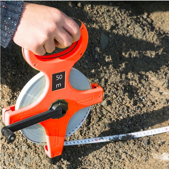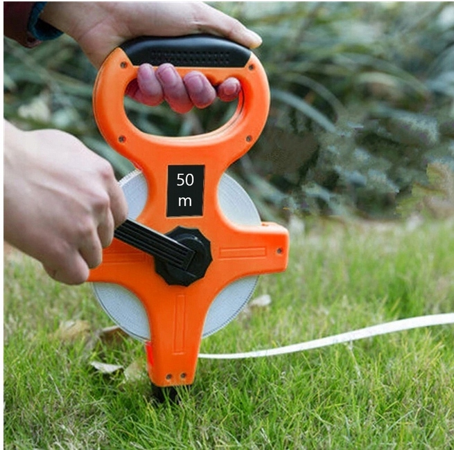Геодезическая мера длиной 50 м и шириной 12 мм. предназначен для измерения больших расстояний на открытой местности или в помещении. Лента изготовлена из устойчивого к истиранию и выцветанию стекловолокна. Открытая конструкция корпуса позволяет содержать ленту в чистоте и предотвращает застревание ленты в закрытой кассете в случае загрязнения песком или почвой. Удобная рукоятка позволяет быстрее наматывать ленту после измерения.
