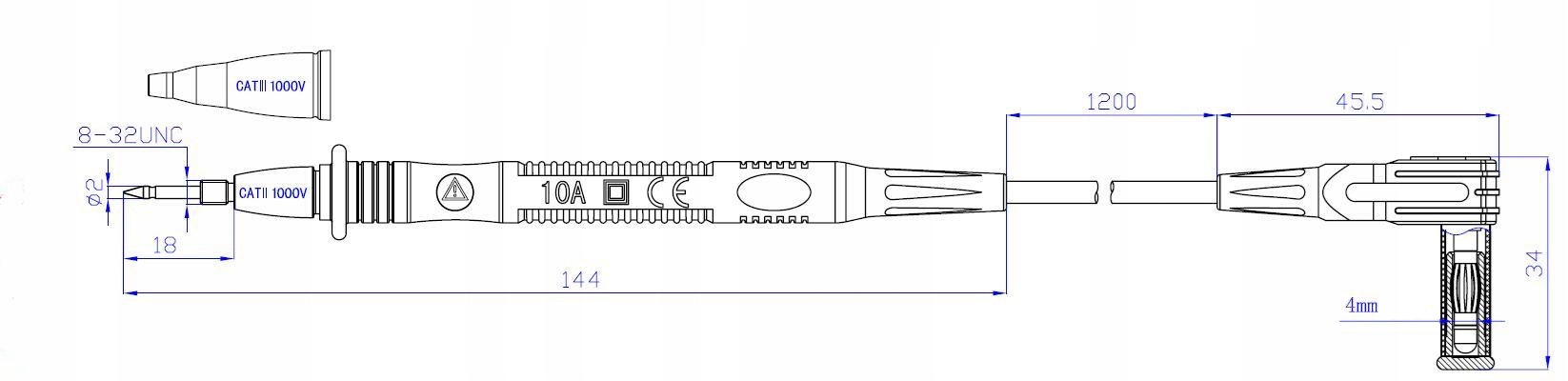 - тип разъема: штекеры типа «банан» 4 мм, игольчатые наконечники с резьбой 2 мм.