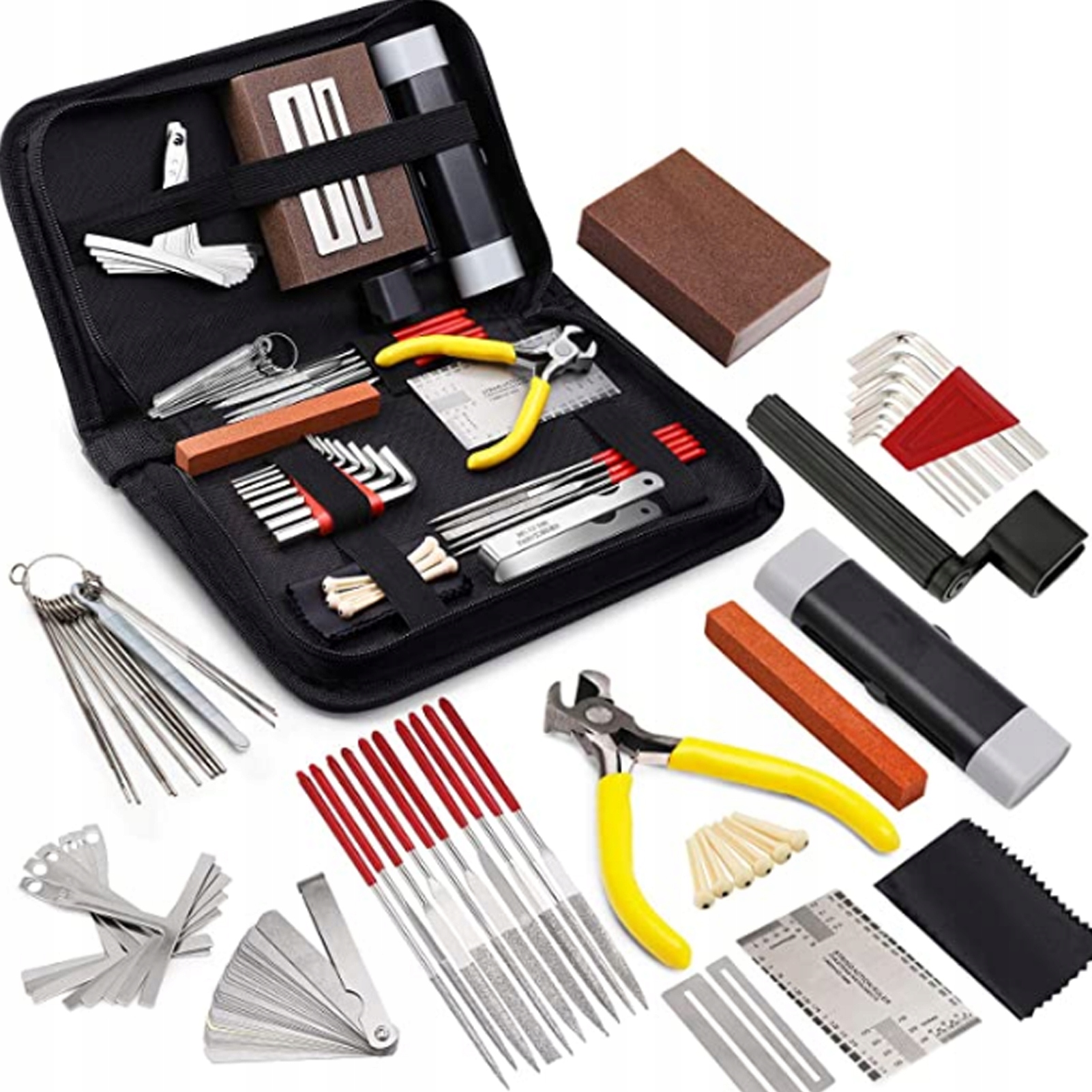 4. Специально используется для большинства частых ремонтов и регулировок гитар. Содержит некоторые из самых полезных и популярных инструментов для обслуживания и ремонта, ремонтные комплекты для юных музыкантов, идеальный подарок для новичков или для подиума
