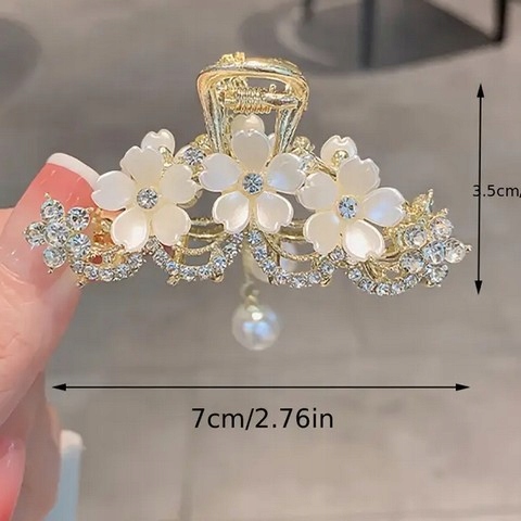 Блам с подвесками, жемчугом и цветами, в винтажном стиле, золото, маленький