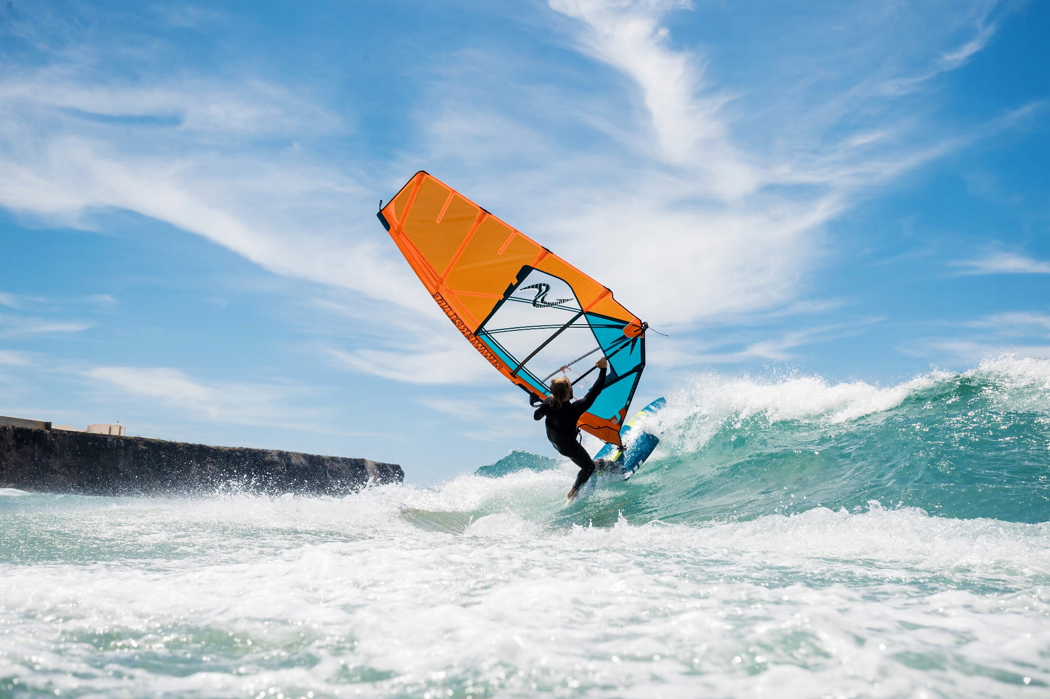 - Кевлар Укрепление против растяжения (сухожилия управления растяжением) Кевларовые усилия управления растяжением равномерно распределяют нагрузки на поверхности паруса - от Szotowy до мачты. Они контролируют точку, в которой начинается Twist (Twing the Sail), увеличивает диапазон ветра и долговечность всей структуры. Это оригинальное решение в стиле Simmer, которое впоследствии было широко адаптировано другими брендами паруса.