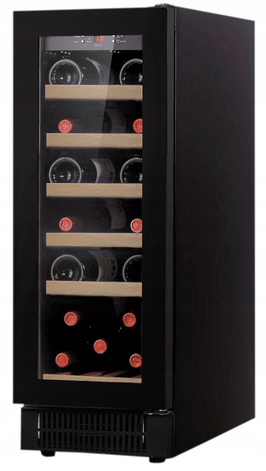 Винный холодильник вмещает 19 бутылок емкостью 0,75 л, класс энергоэффективности А. Электронное управление, внутреннее светодиодное освещение. Винный холодильник VESTFROST WFG 18 оснащен 5 деревянными полками и 1 презентационной.
