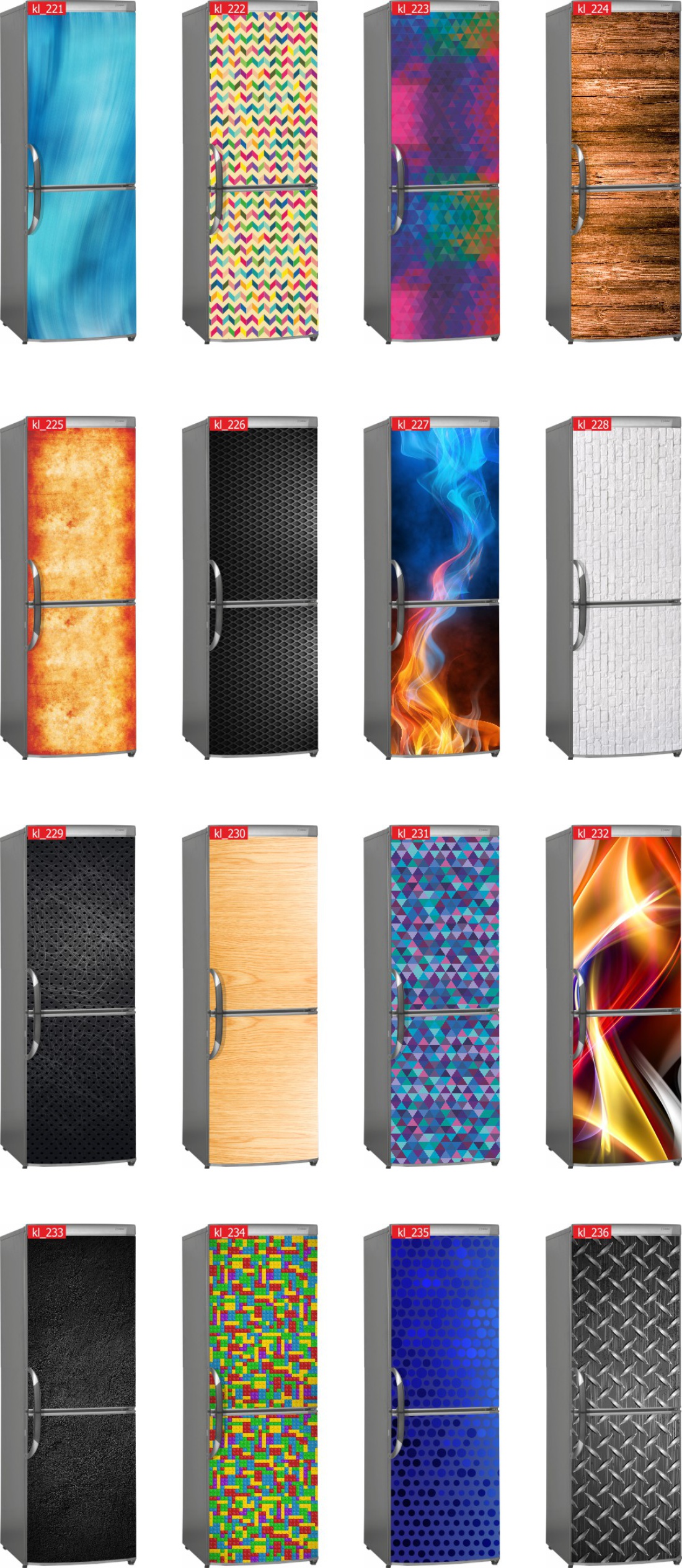 Наклейки изготавливаются и вырезаются по размеру, но мы не делаем отверстий внутри наклейки (например, для поилки или льдогенератора). Такие отверстия можно легко сделать вручную (например, обивочным ножом),