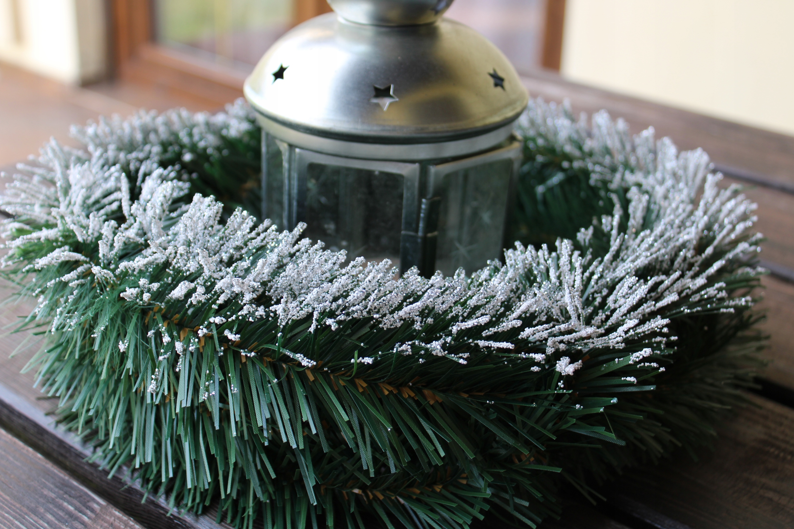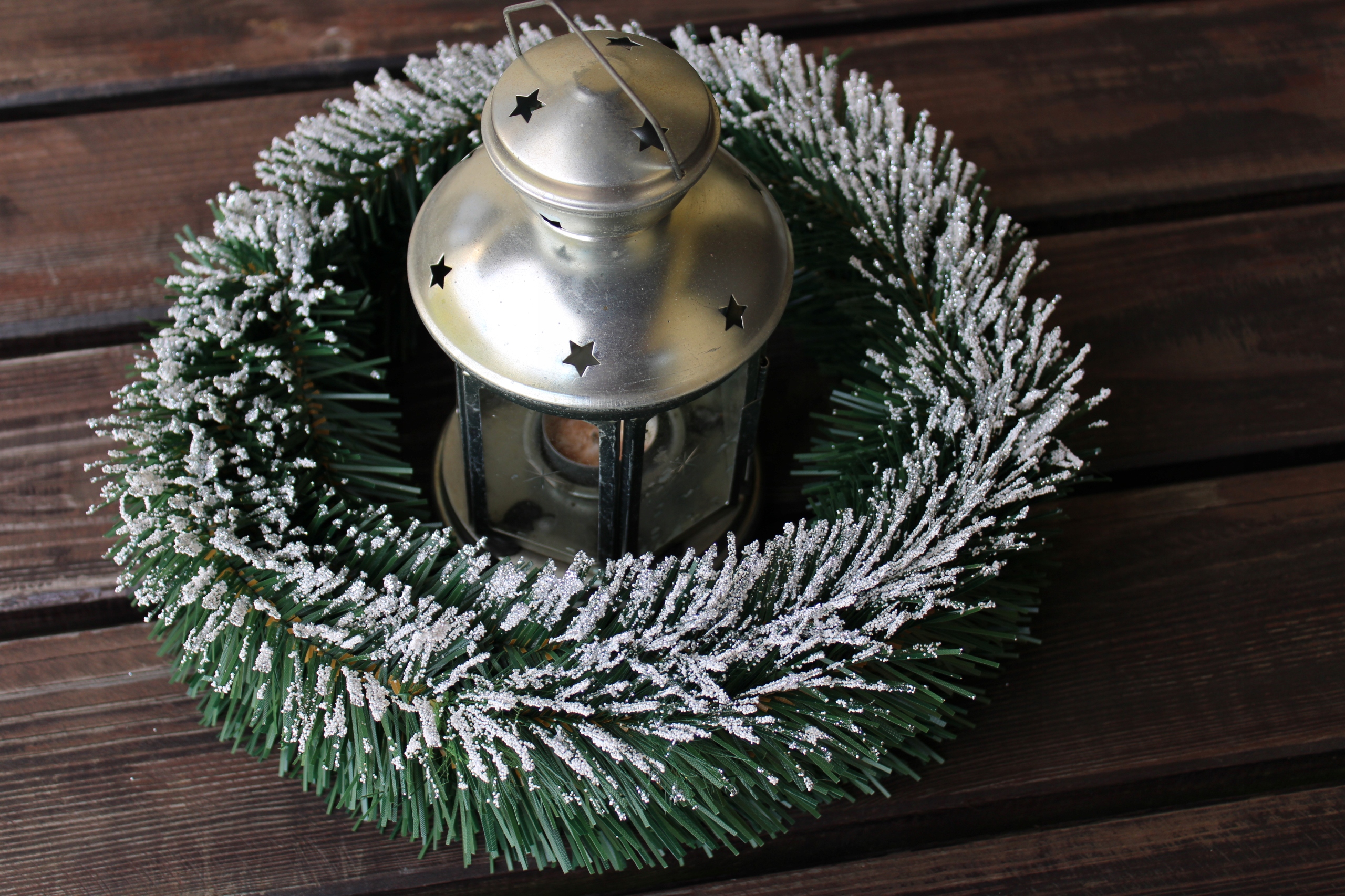 Предмет продажи — заснеженный ромбовидный венок диаметром примерно 33 см.