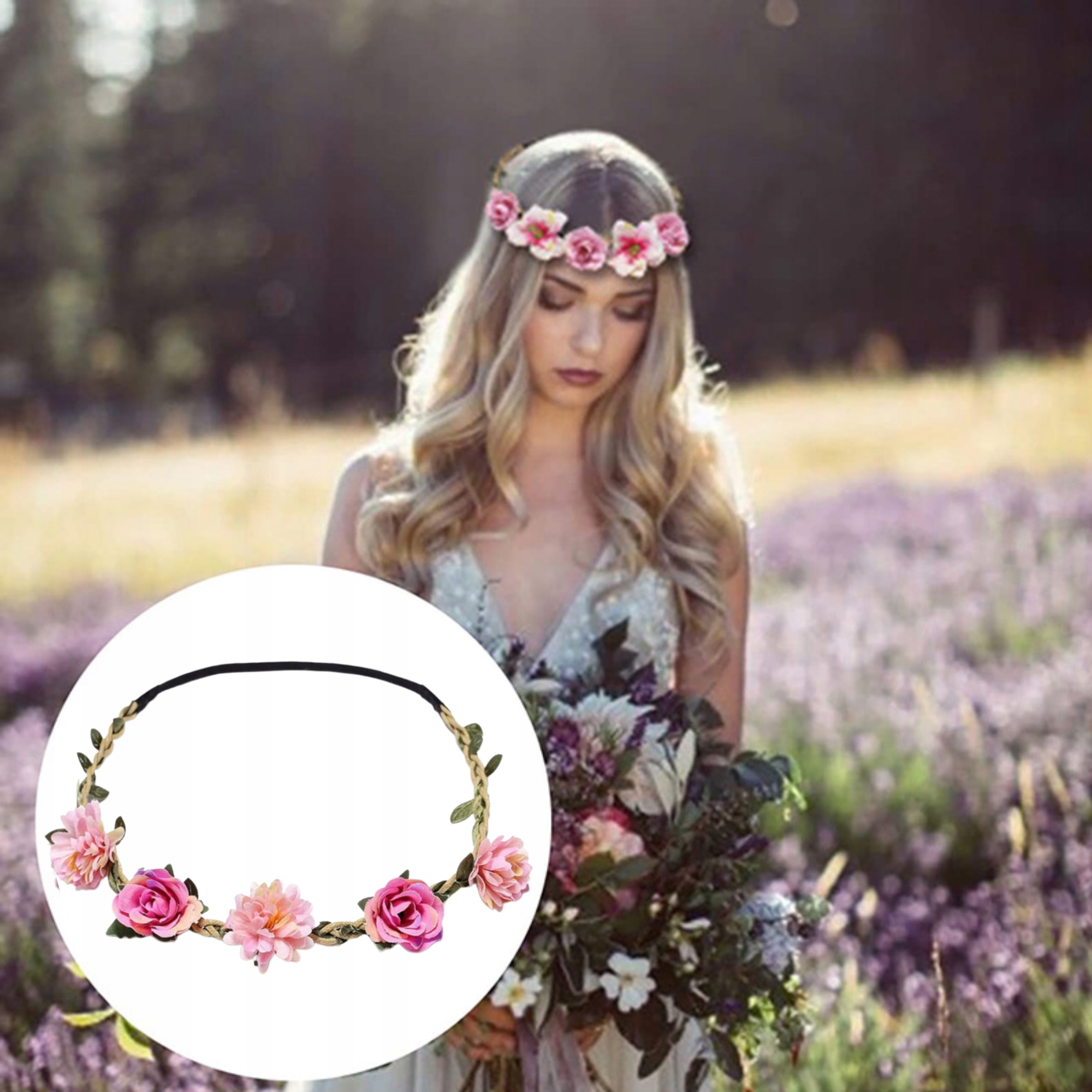 ВІНОК НА ГОЛОВУ, КВІТИ, ПОВ'ЯЗКА БРІДЖА, РОЖЕВИЙ, ВЕСІЛЬНИЙ БРІДЖ, З ГУМКОЮ