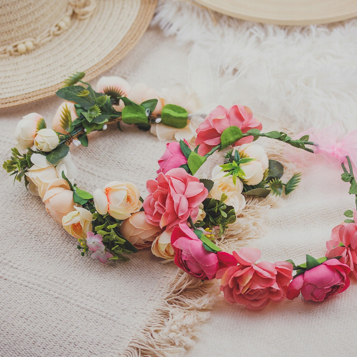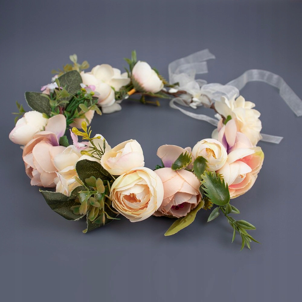 Венок на голову из цветов БОХО СЛИВОЧНЫЕ свадебные ПИОНЫ