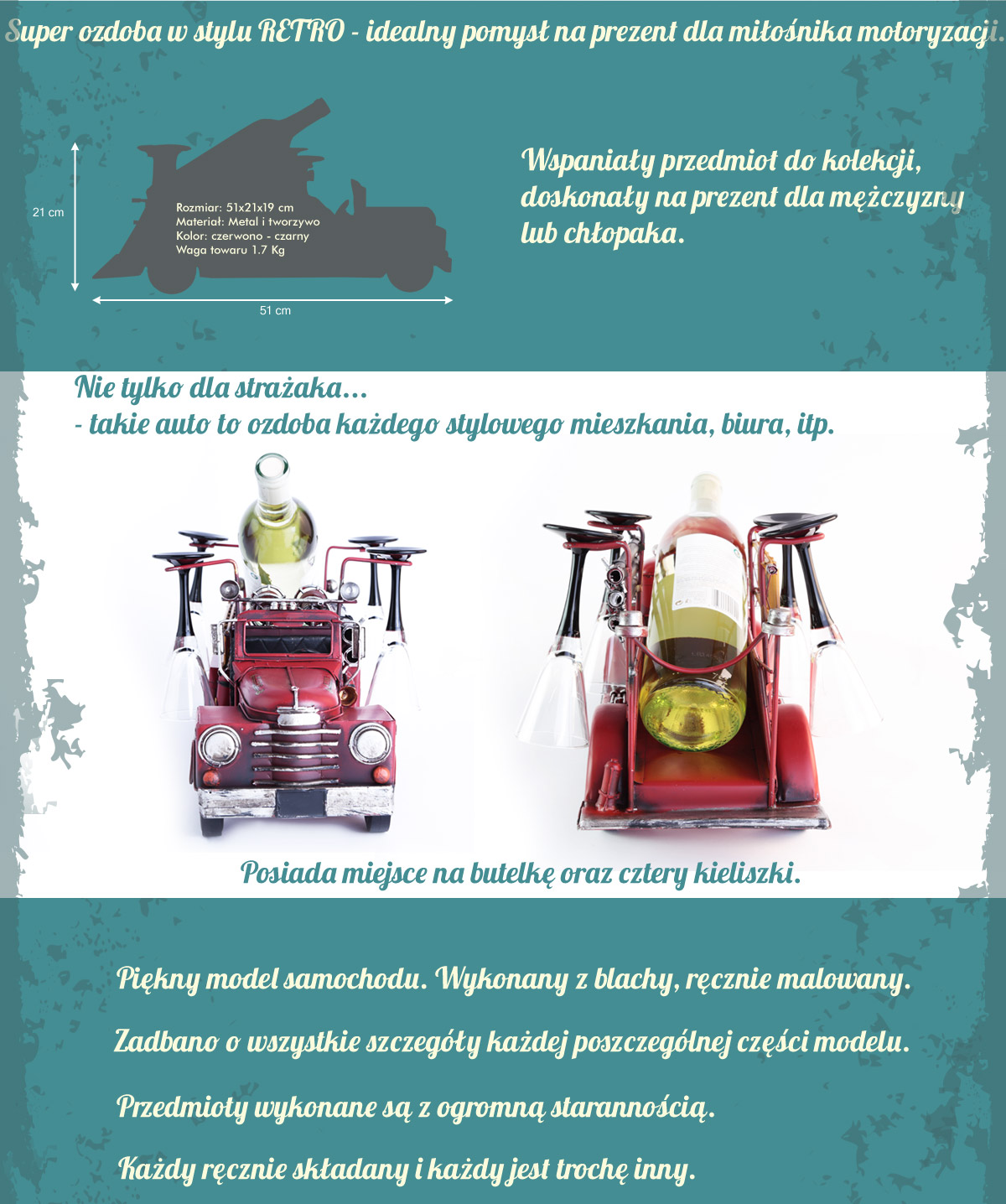 Оплачивая «ВИНОСТЕЖКА РЕТРО АВТОМОБІЛЬ З МЕТАЛЕВИЙ АВТОМОБІЛЬ» данное изделие из «Пожарная служба» вы можете быть уверены, что после оформления заказа, доставки в Украину, вы получите именно то, что заказывали, в оговоренные сроки и европейского качества.