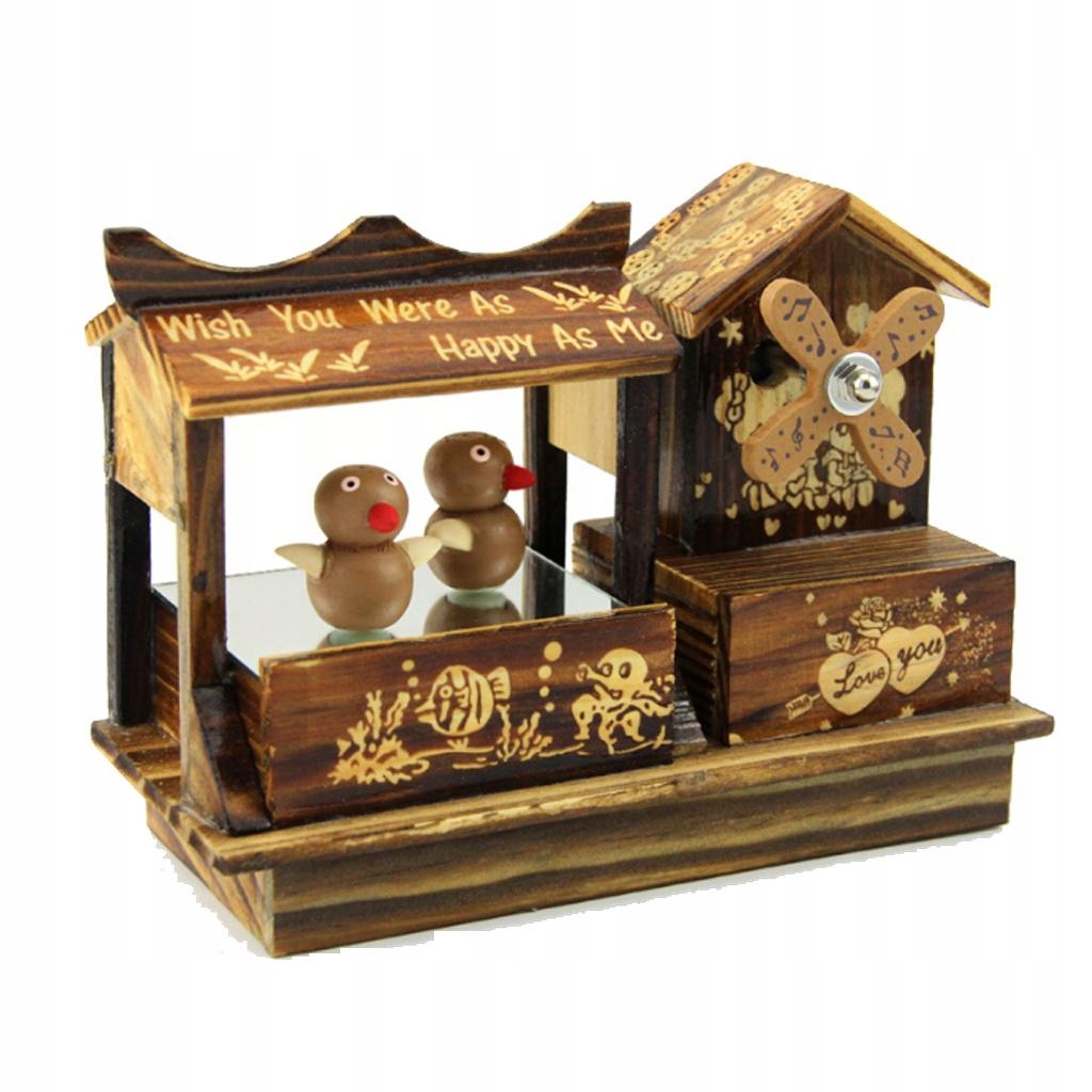 Vintage drewniana pozytywka ptak taniec rzemiosło