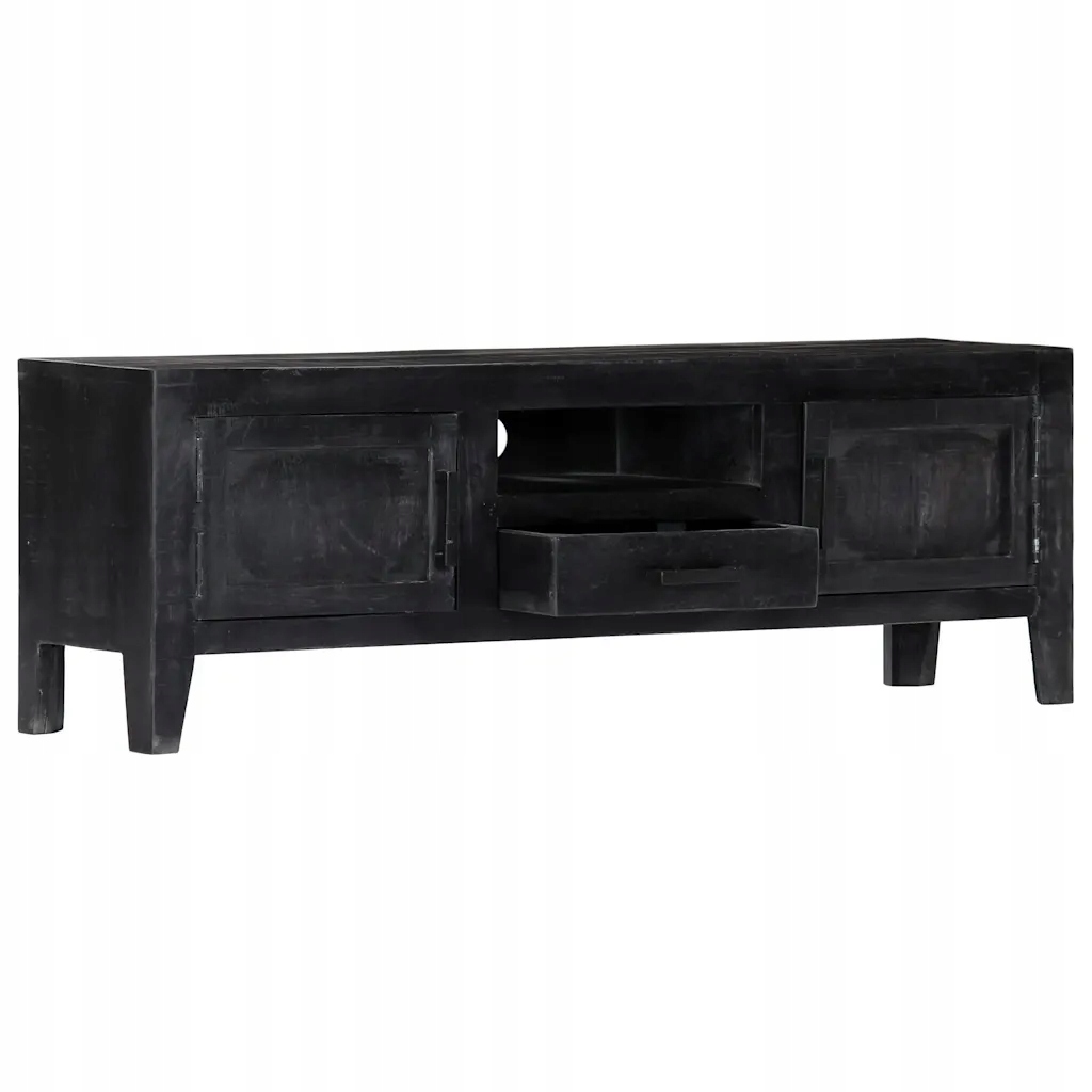 Винтажный шкаф под телевизор из дерева манго, 118x30x40 см, черный