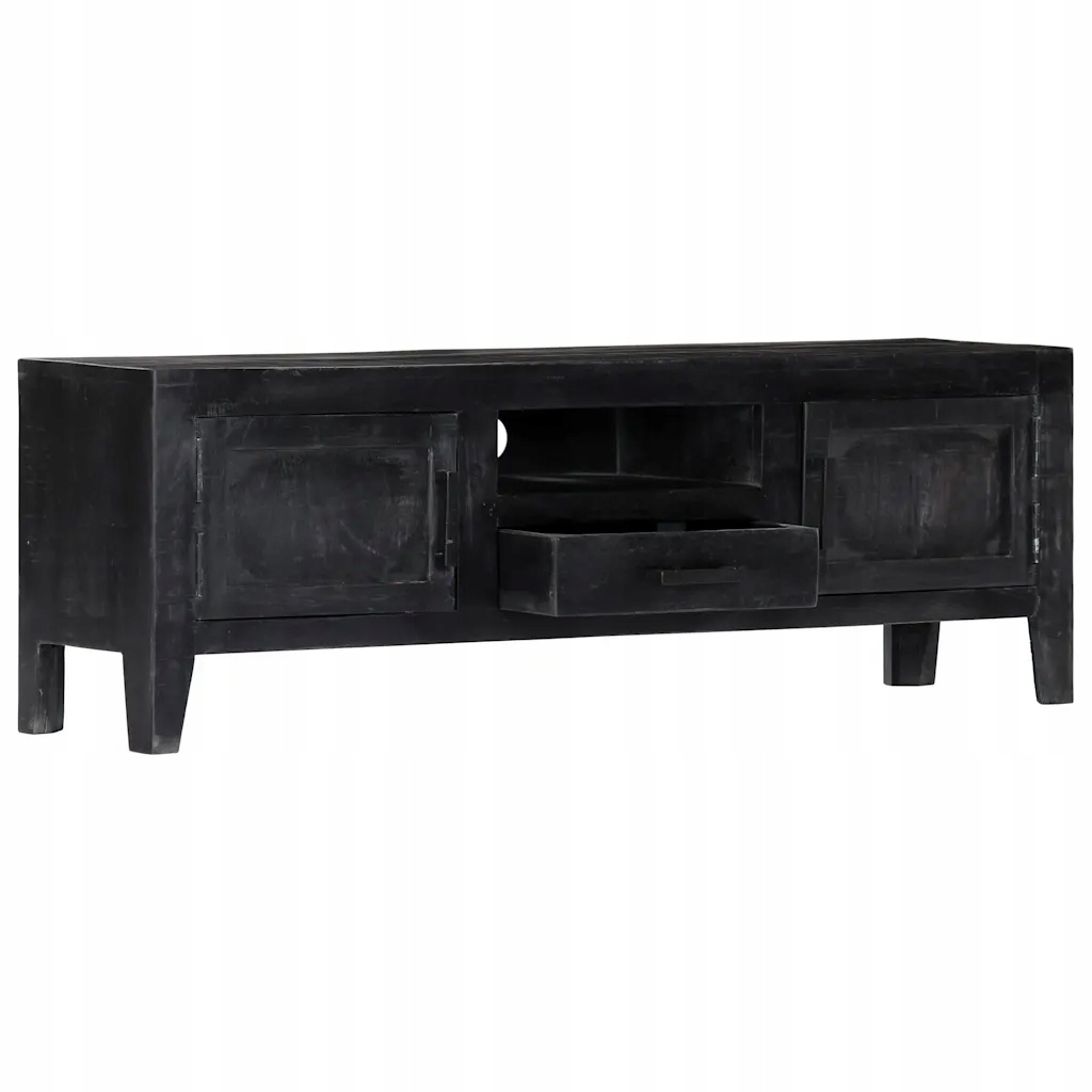 Винтажный шкаф под телевизор из дерева манго, черный, 118x30x40 см