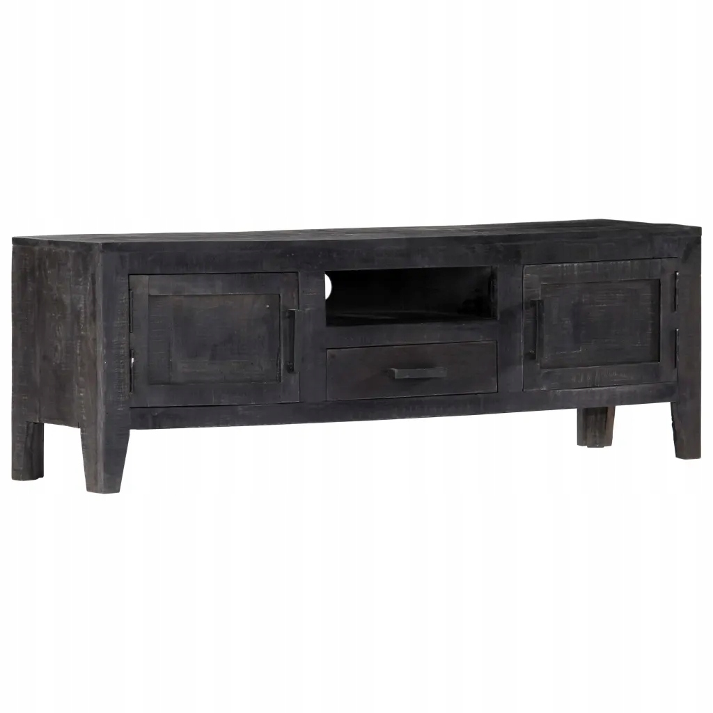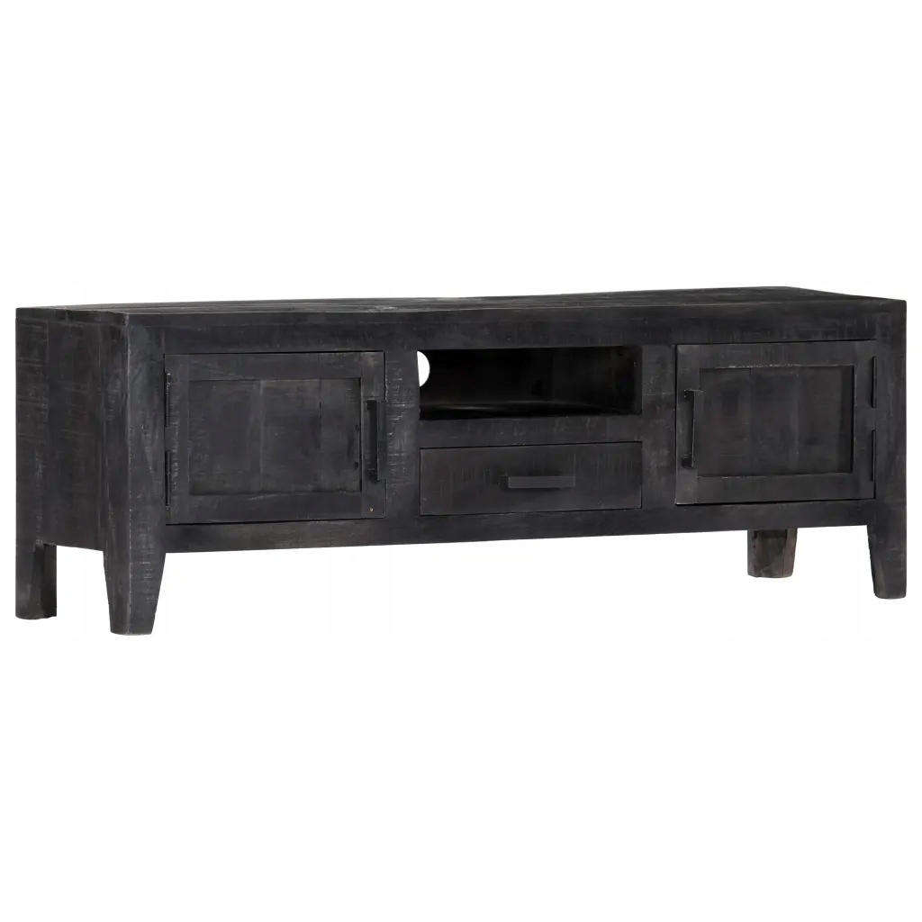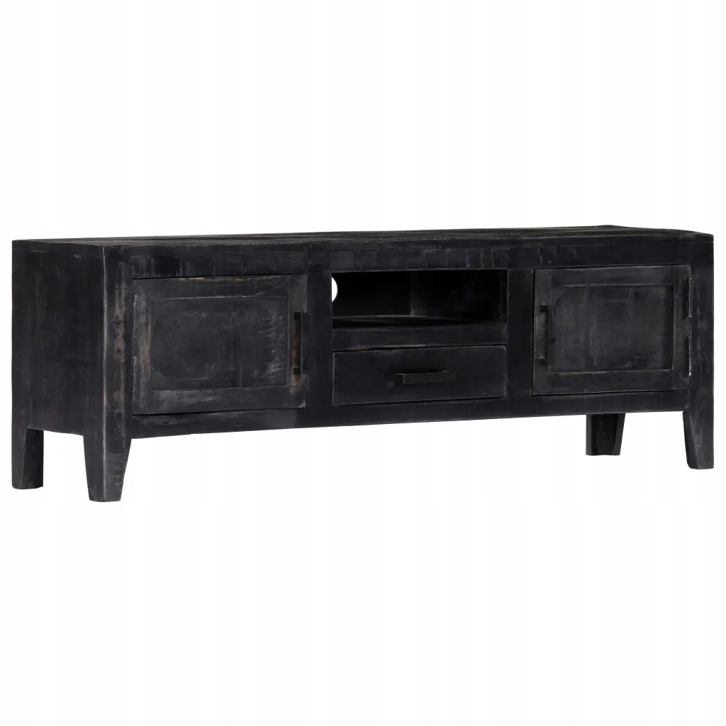 Винтажная тумба под телевизор из дерева манго, чёрная, 118х30х40 см