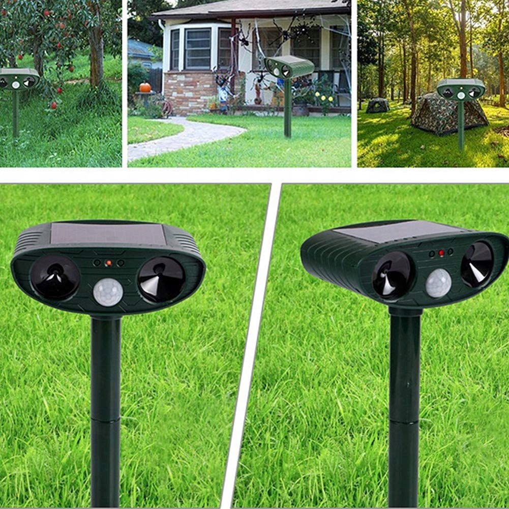 Эффективный отпугиватель животных, основанный на принципе излучения различных ультразвуковые частоты и мощный светодиодный свет. Издаваемые звуки и вспышки света очень беспокоят животных, поэтому эффективно отпугивают их, не причиняя им вреда. Устройство включается, когда животное попадает в зону действия датчика движения, что позволяет экономить электроэнергию.