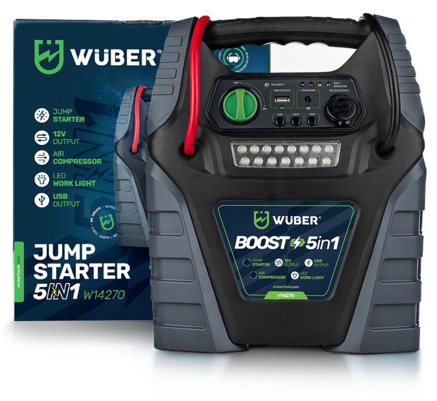 БУСТЕР ВЫПРЯМИТЕЛЬНЫЙ КОМПРЕССОР 5 В 1 ЗАПУСК ОСВЕЩЕНИЯ POWERBANK WUBER