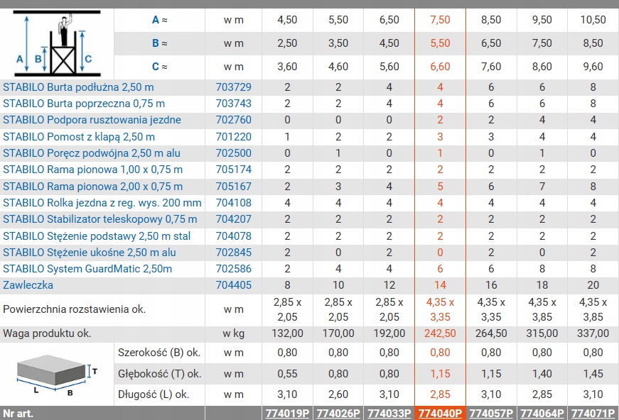 stabilo 100 водительских лесов 7,50 м 2,5/0,75 м