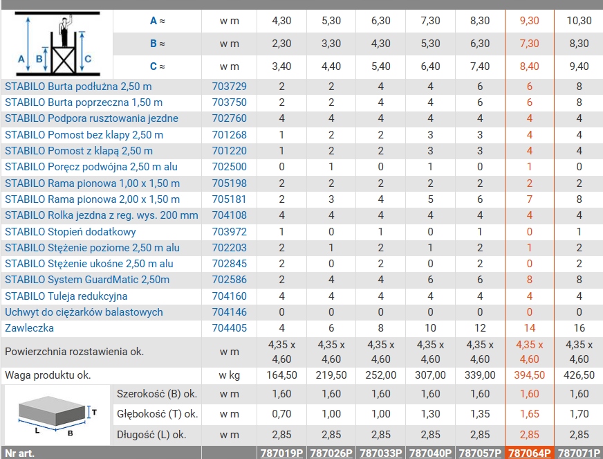 - Сертифицировано Tüv, нагрузочная емкость 200 кг/м² (группа каркасов 3) Согласно PN EN 1004-1 выполненным на высоте до 14,30 м (на длине рабочей области от 2,00 м до 12,30 м)