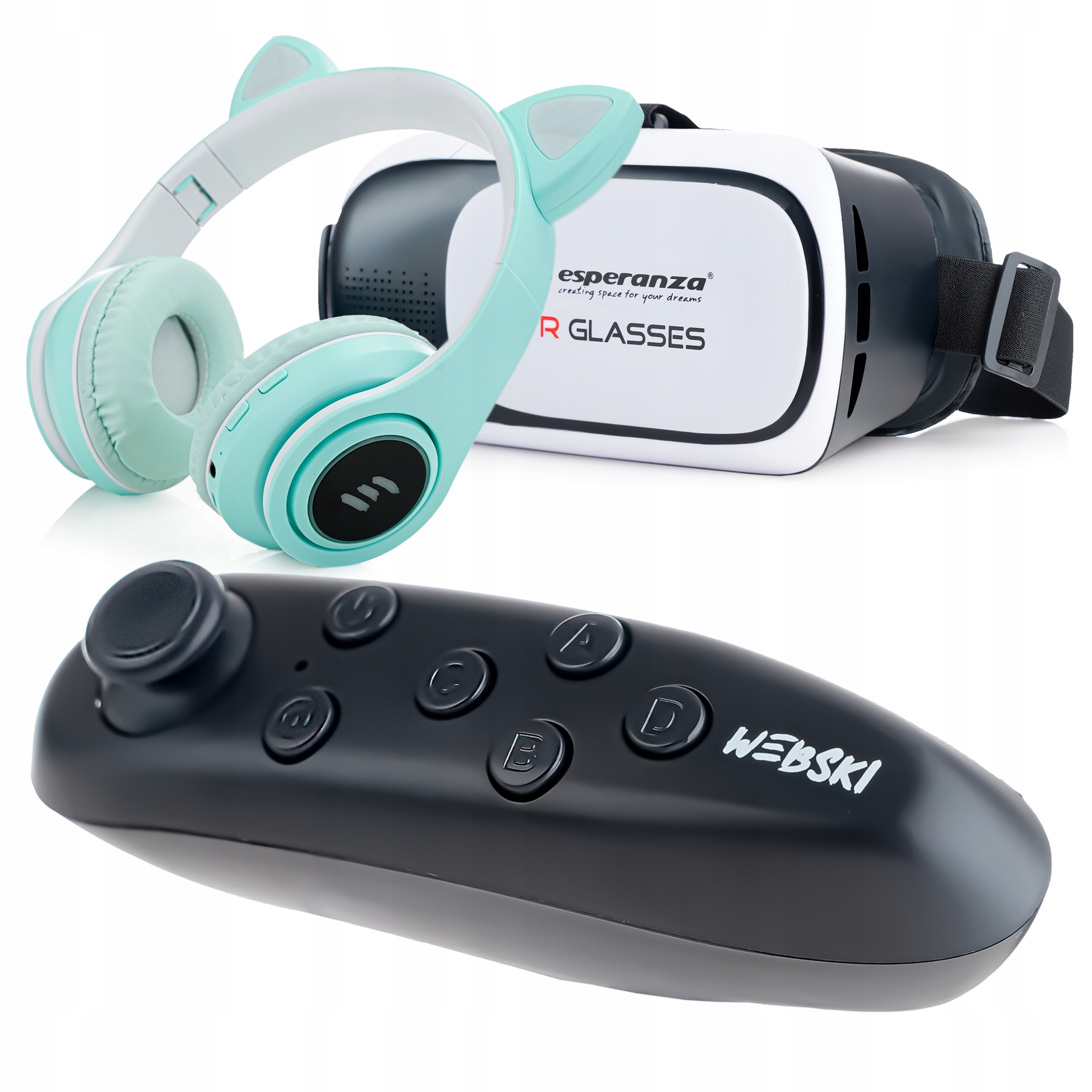ОЧКИ ВИРТУАЛЬНОЙ РЕАЛЬНОСТИ 3D 360 VR ДЛЯ ТЕЛЕФОНА С КОНТРОЛЛЕРОМ НАУШНИКОВ