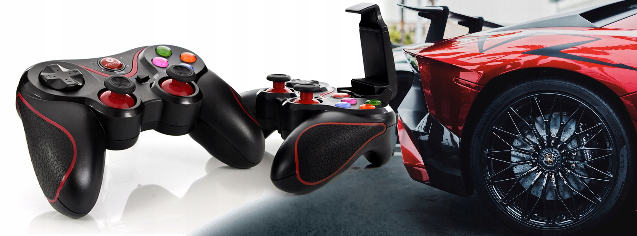 В комплект входит беспроводной геймпад, который подключается к телефону по технологии Bluetooth. Осматривайтесь вокруг в очках VR и перемещайтесь по виртуальному миру с помощью геймпада.