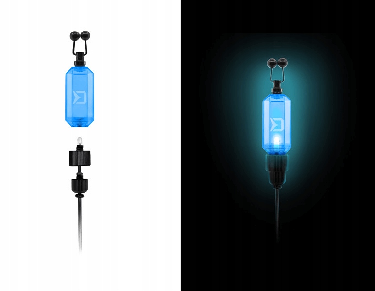 Индикатор имеет кабель с вилкой для подключения к индикатору поклевки. После подключения светодиод загорается тусклым светом, что позволяет видеть индикатор поклевки в ночное время.