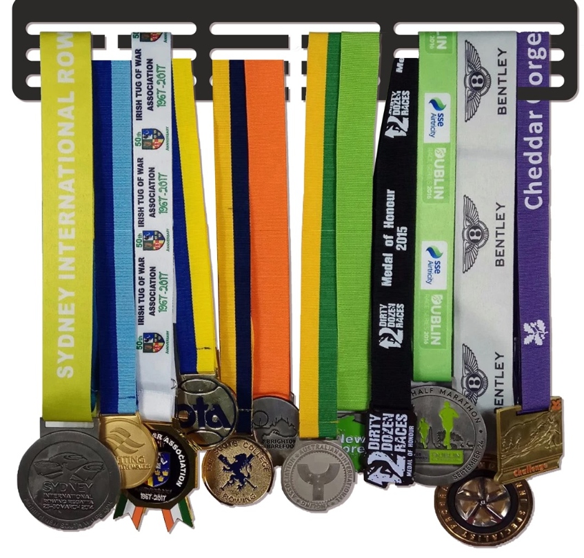 Если все медали металлические и цельные (как на фото ниже), то грузоподъемность одной вешалки составляет около 20-25 медалей.