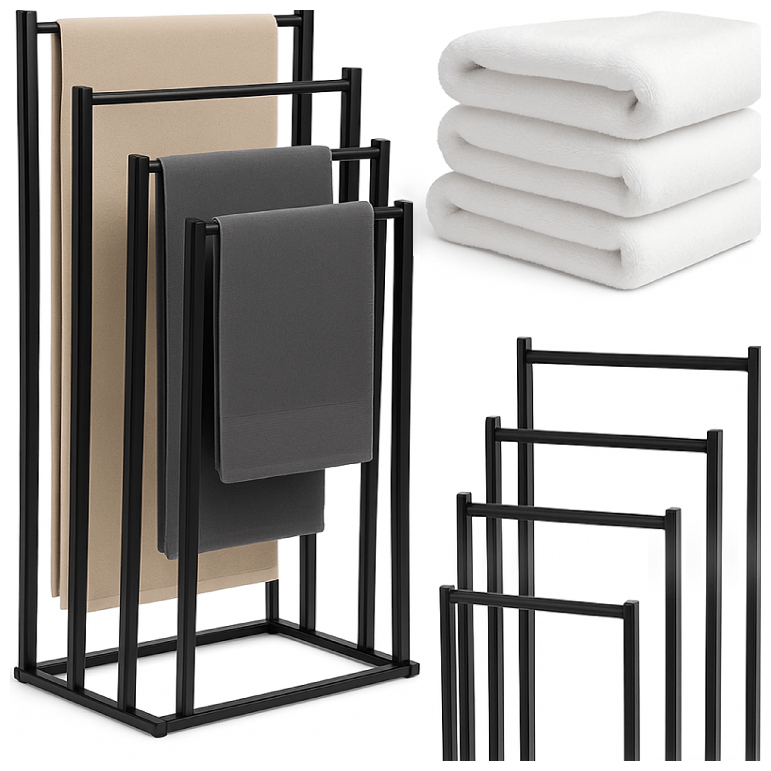 ✔️ Четырехступенчатая конструкция подставки разработана таким образом, чтобы обеспечить максимальную вентиляцию между полотенцами. Соответствующее расстояние и разная высота плеч обеспечивают свободную циркуляцию воздуха, благодаря чему ткани сохнут намного быстрее и остаются свежими. Больше никакой влаги и неприятного запаха – ваши полотенца всегда будут мягкими, пушистыми и готовыми к использованию!
