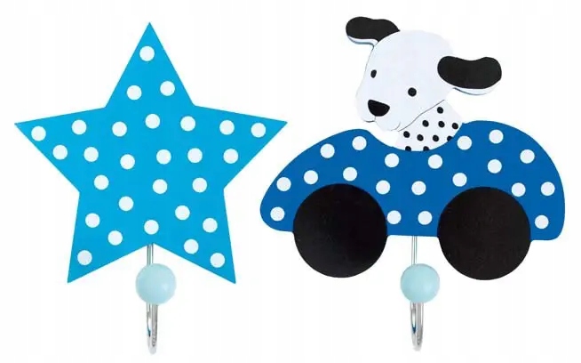 Blue Dog Hanger - это очаровательный набор двух вешалков шведского бренда Jabadabado. Одна вешалка с забавным изображением собаки в синих цветах в белых точках, а другая -вешалка в форме звезды в тех же цветах. Вешалка идеально сочетается с декором комнаты вашего ребенка. Это позволит вам контролировать хаос среди одежды и учит независимости малыша в уходе за порядком в комнате.