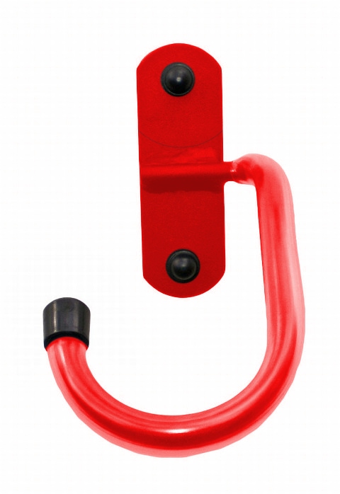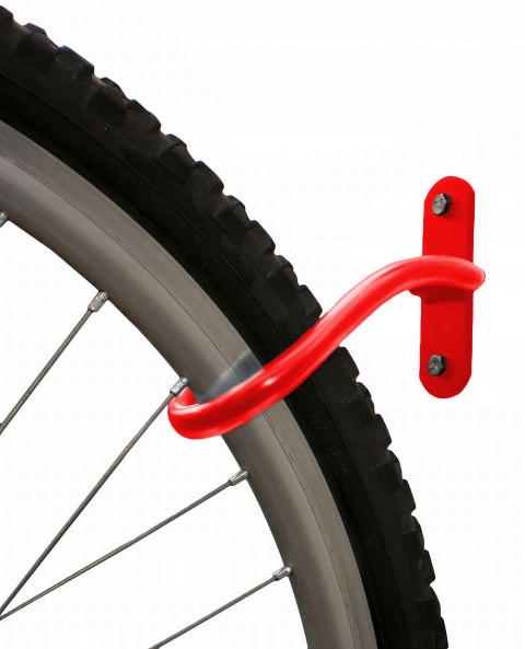 Универсальная вешалка, крепящаяся на стену. Вешалка, предназначенная для велосипедов любого типа. Подвешиваем велосипед за переднее колесо. Покрашен красным порошковым лаком.