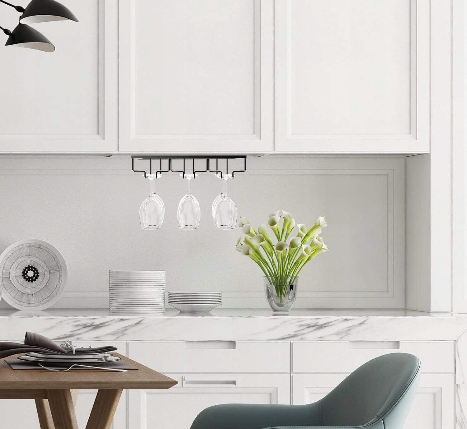 ➡ Объединенные места. Наша стойка для бокалов для вина использует пространство под шкафом в качестве места для хранения бокалов для вина, что занимает мало места.