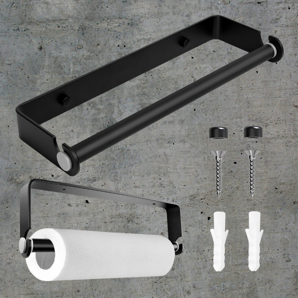 - Простая установка: Держатель для бумажных полотенец можно легко установить двумя способами: непосредственно на стену или снизу шкафа с помощью крепежных винтов. входят в комплект