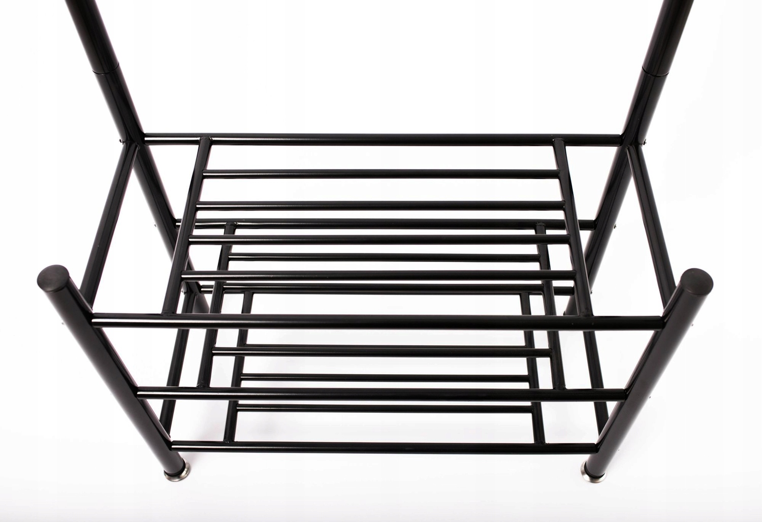 Вешалка-стойка для одежды, шорт, пальто с полками для обуви - металл, лофт, черная