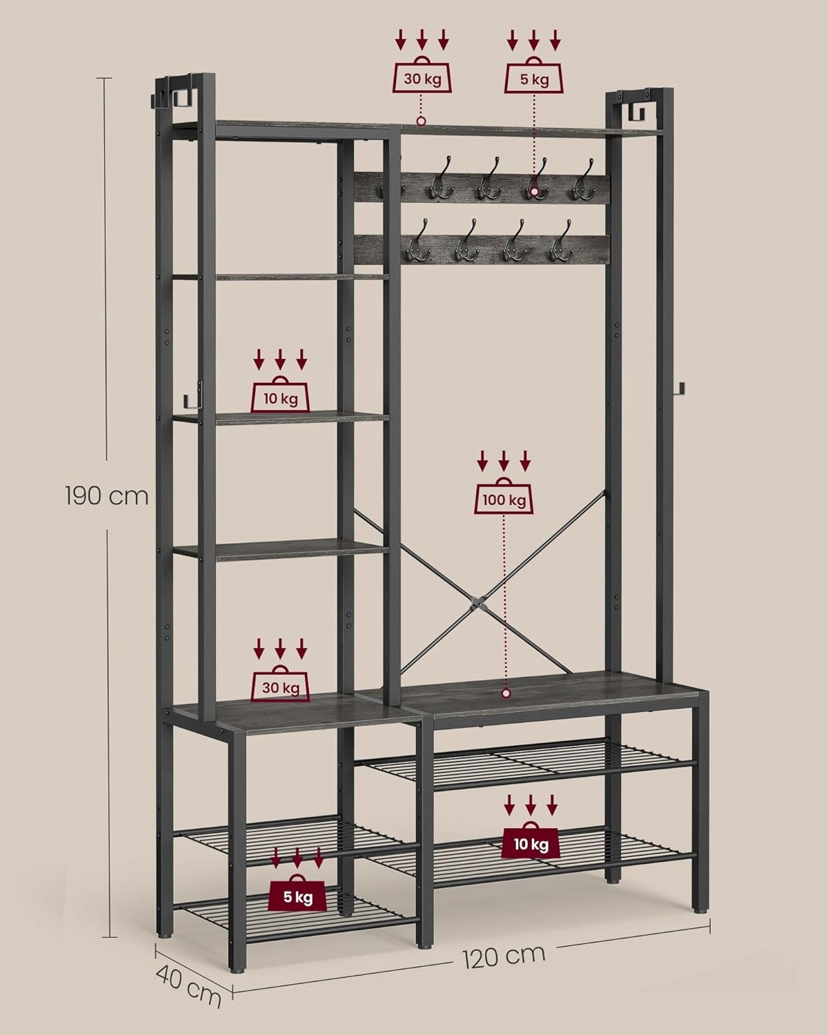 - максимальная статическая нагрузка каждого крючка для одежды:5 кг