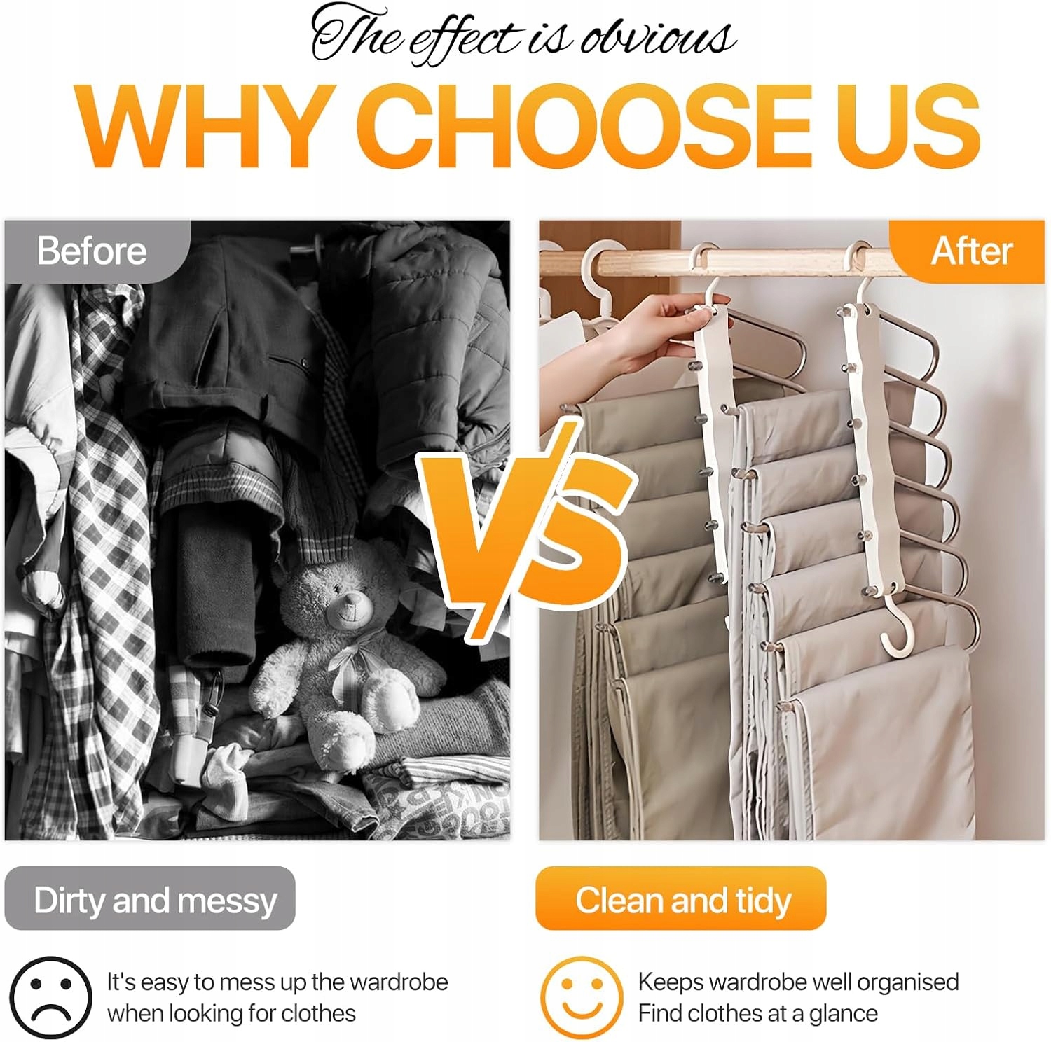 - Два способа использования: вешалку для брюк можно использовать горизонтально или вертикально, способ подвешивания можно выбрать в соответствии с вашим гардеробом. Вешалка для брюк идеально подходит для подвешивания джинсов, брюк, галстуков, шарфов и т. д.
