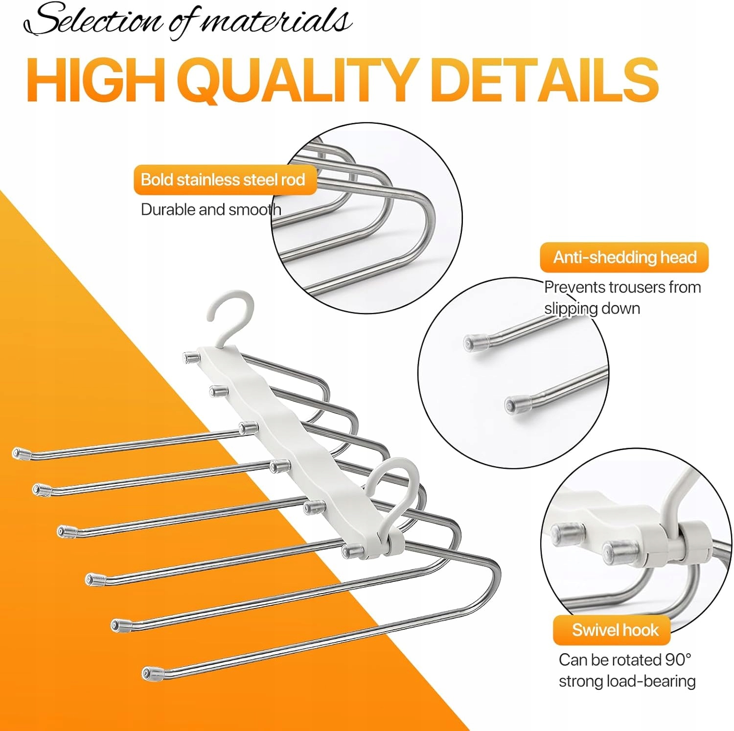 - Высококачественные материалы. Вешалка для брюк изготовлена из прочной нержавеющей стали и АБС-пластика, который прочен и устойчив к поломке. Один крючок выдерживает вес до 8 кг. Даже если ваши брюки очень тяжелые, они достаточно прочные.