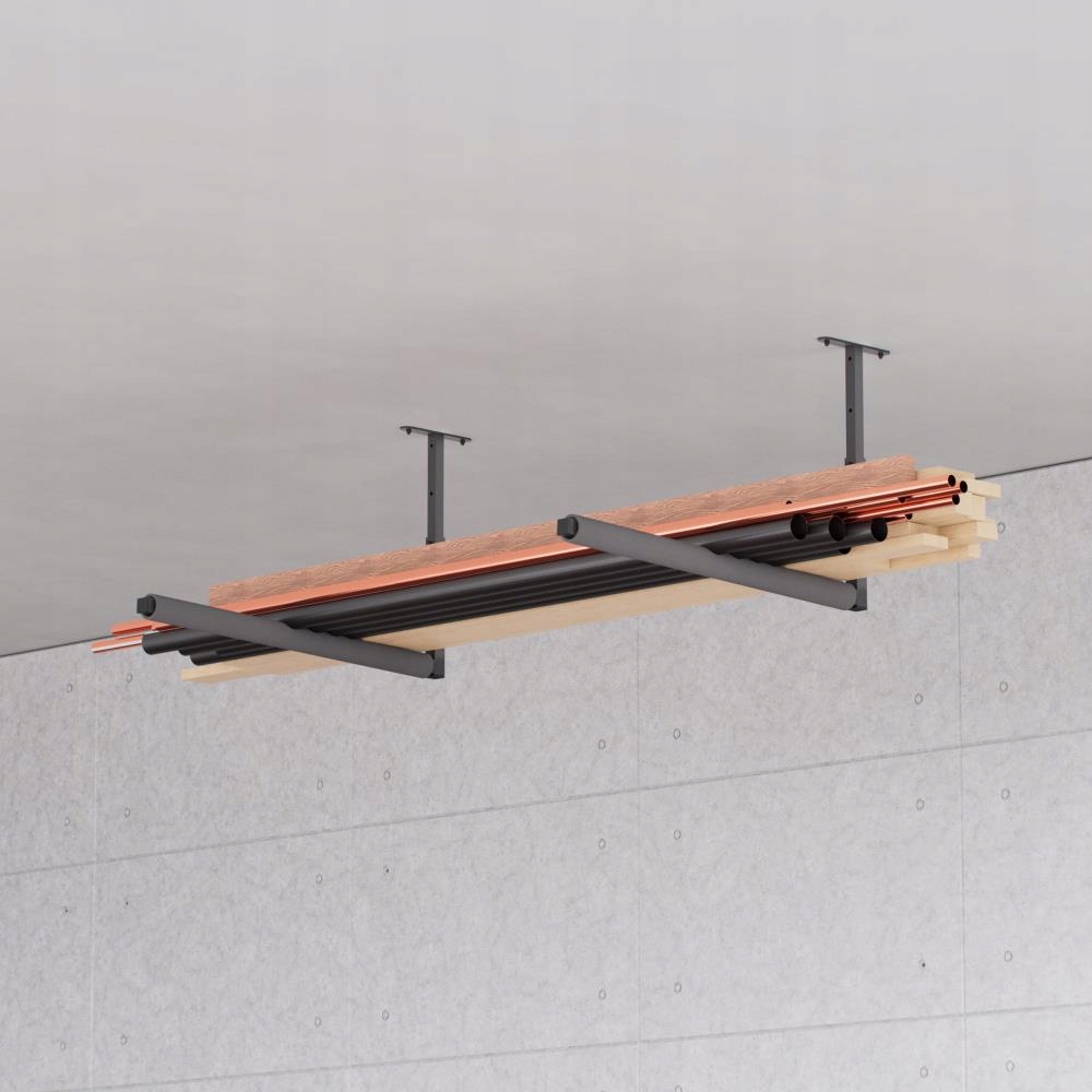 - Регулируемая подвеска. Потолочное крепление регулируется, что позволяет регулировать высоту в соответствии с вашими потребностями. Благодаря этому вы сможете удобно хранить различные предметы, такие как лестницы, байдарки, удочки и инструменты.