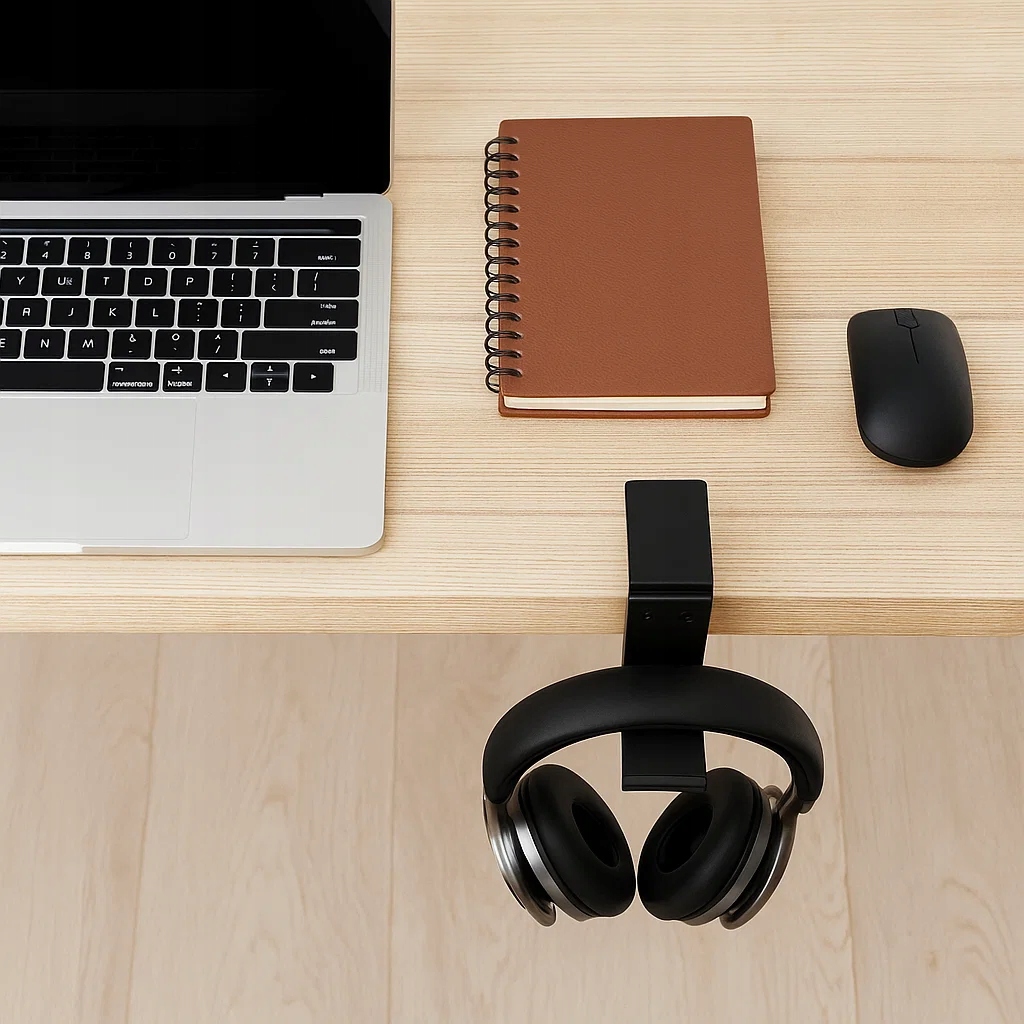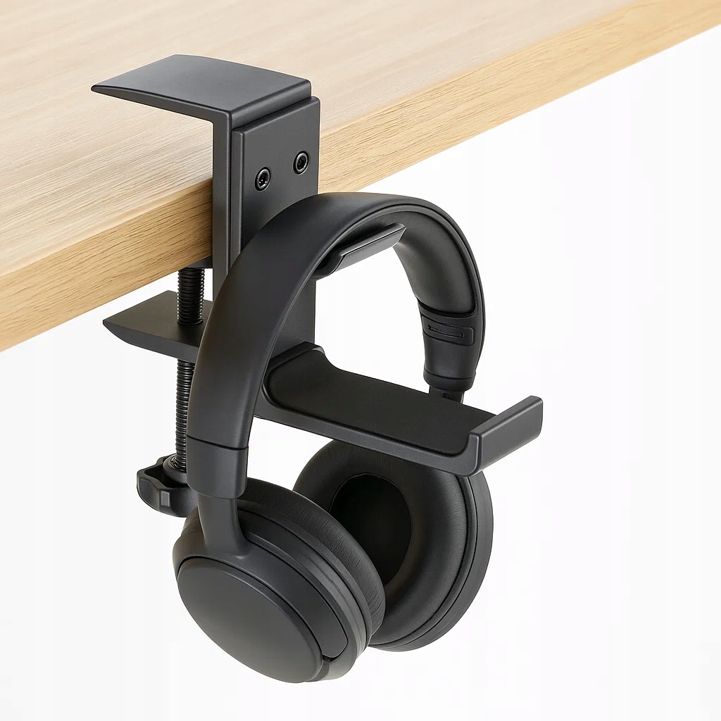 - Держатель для наушников, который освобождает место на столешнице и обеспечивает удобный доступ к оборудованию.