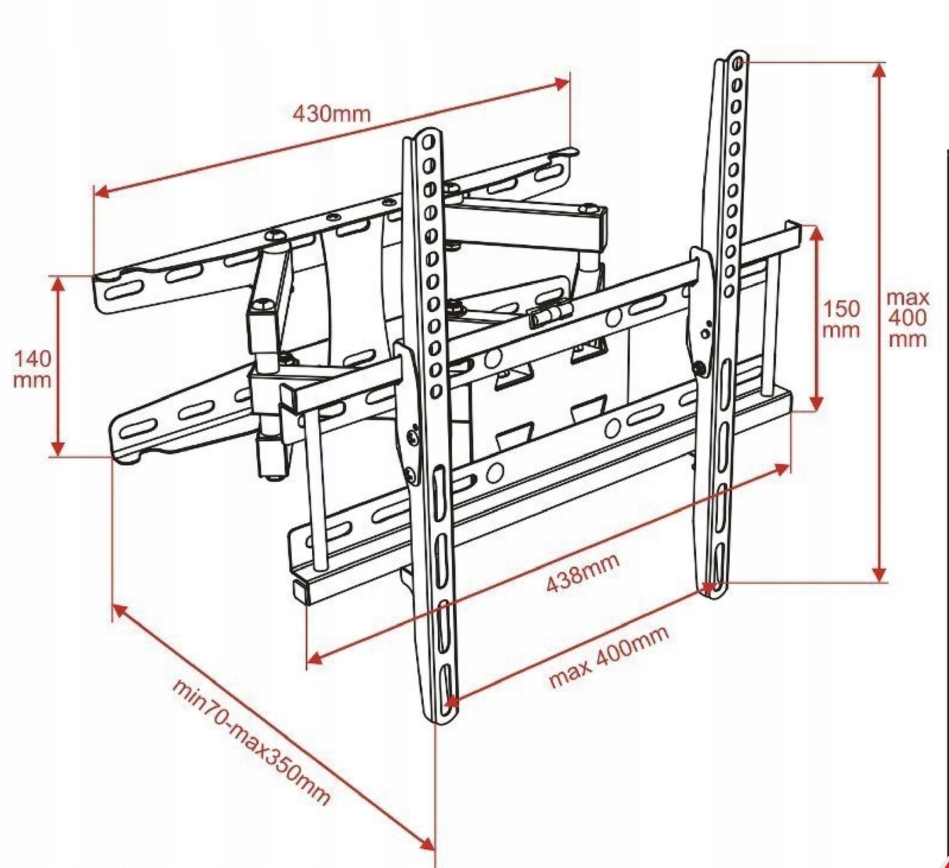 - Максимальный размер крепления ТВ/монитора: 400х400 мм