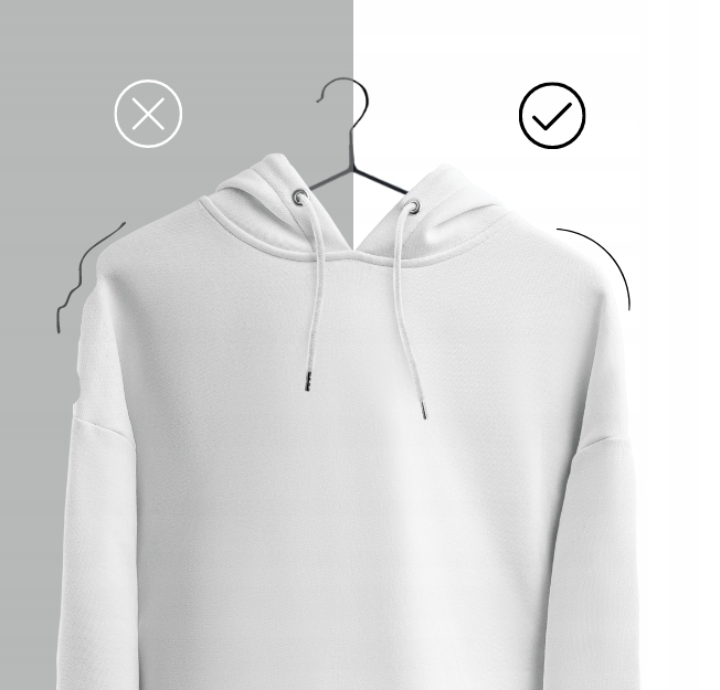 Благодаря правильной форме вешалки и закругленным дужкам одежда не деформируется, а ткань сохраняет правильную форму